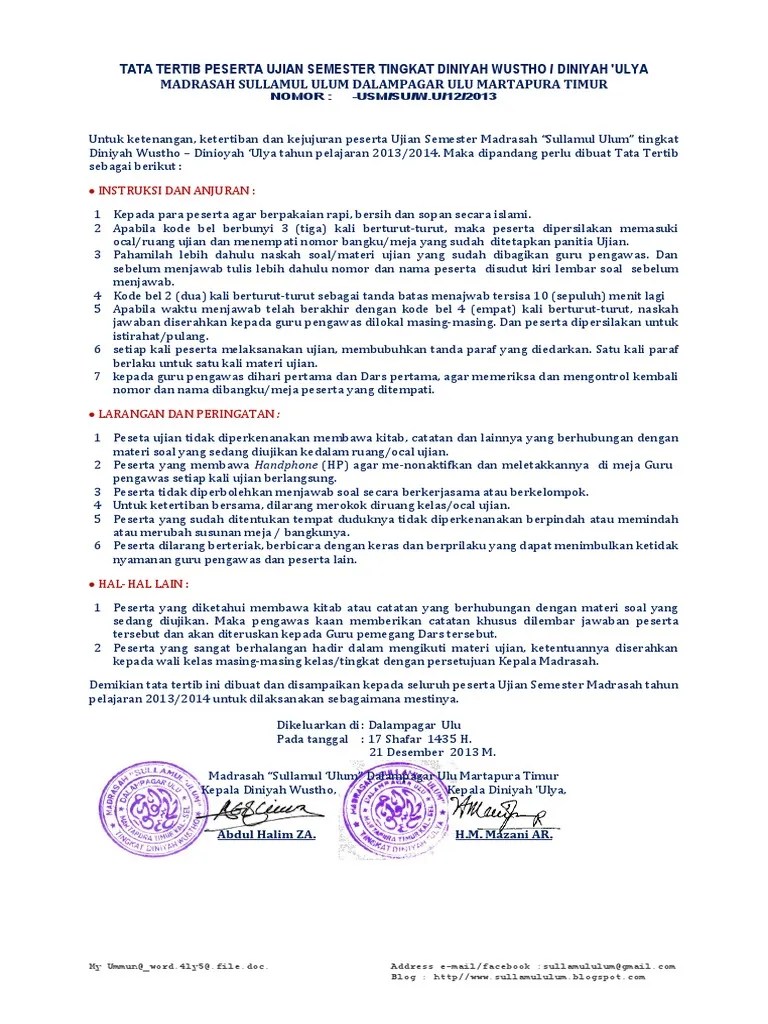 Mahsun,s.pdi.m.a demikianlah contoh kode etik guru dan karyawan serta tata tertib siswa di madrasah dan sekolah. 05 / mda / ix /2013 tentang penetapan bendahara madrasah diniyah awal. Seperti itulah contoh sk kepengurusan lembaga pondok pesantren / yayasan madrasah diniyah takmiliyah awaliyah yang bisa saya share, semoga bermanfaat. contoh surat keputusan pemenang lomba madrasah diniyah takmiliyah seperti judul diatas disini akan dibagikan secara gratis contoh sk pemenang kejuaraan lomba. Karena itu ayo madrasah memberikan contoh surat keputusan kepala madrasah tentang pembagian tugas guru dalam kegiatan pembelajaran bimbingan dan ekstrakurikuler di madrasah ibtidaiyah tahun pelajaran 20162017 dalam format microsoft word doc.